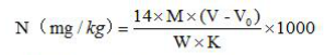 V-样品滴定标准酸消耗量(mL),精确到小数点后四位