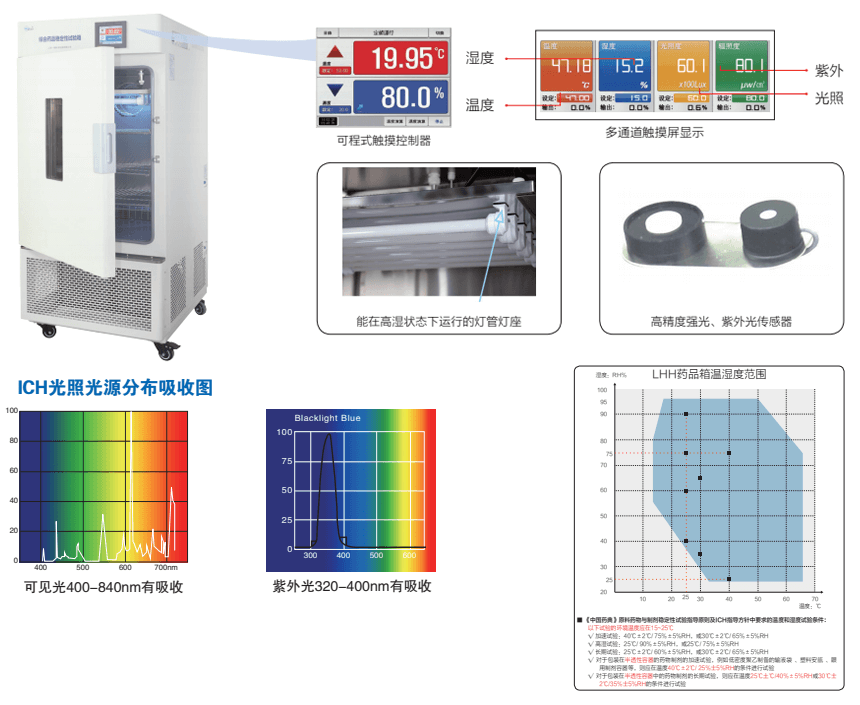 控制,是制药和化妆品企业进行GMP认证的必备设备。符合ICH指导原则中光稳定性测试条件。