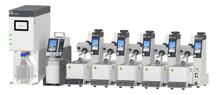功能丰富、方便使用 阵列旋转蒸发仪支持真空度快速锁定、定时蒸发、正反交替旋转等智能化功能,给实验工作带来了极大的便利。